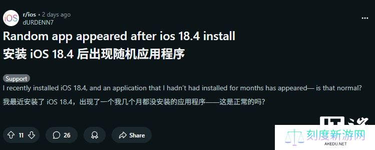 在过去 24 小时内,Reddit 上的多个帖子以及苹果社区支持页面上都充斥着用户报告。这些用户在更新至 iOS 18.4 后,发现其设备上突然出现了之前并未安装的第三方应用和 / 或游戏。这些应用大多是用户数月甚至数年前删除的,且早已被遗忘。