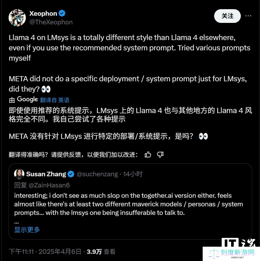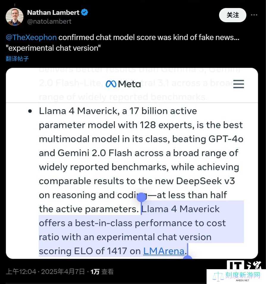 Meta 新旗舰 AI 模型 Llama 4 Maverick 测试成绩遭质疑,被指针对性优化