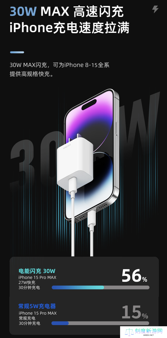 酷态科去年在京东上架一款30W USB-C充电头,支持PD快充,日常售价 26.9 元,首发价 25元。