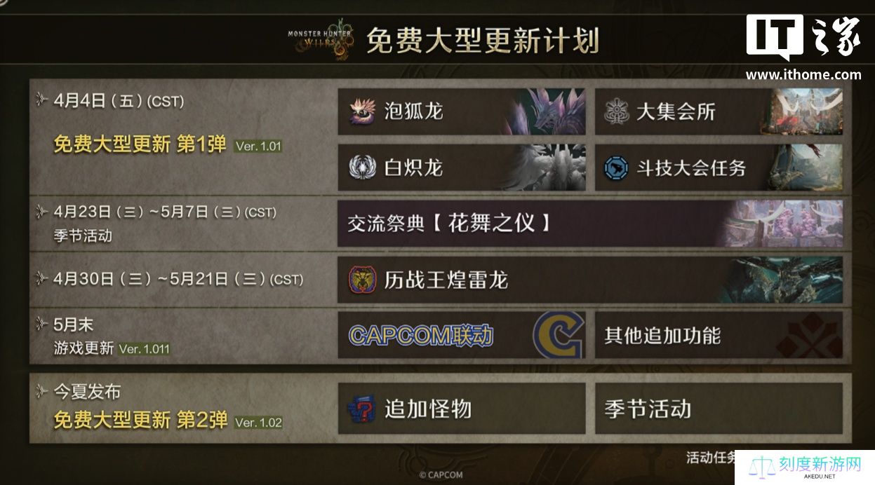 本站 4 月 3 日消息,《怪物猎人:荒野》第一弹免费大型更新(1.010.00.00)将于明日 11:00 正式上线,卡普空刚刚在官网发布了此次更新说明。本站翻译如下: