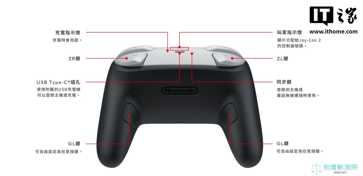 本站 4 月 5 日消息,在 4 月 2 日举行的任天堂Switch 2发布会上,官方公布了 Switch 2 的新款Pro手柄,主要增加背键、3.5mm音频接口和C键。