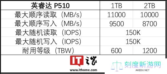 本站 4 月 11 日消息,英睿达官网现已上线今年初公布的主流级 PCIe Gen5 NVMe M.2 2280 固态硬盘 P510 ,提供 1TB 和 2TB 两个容量版本。