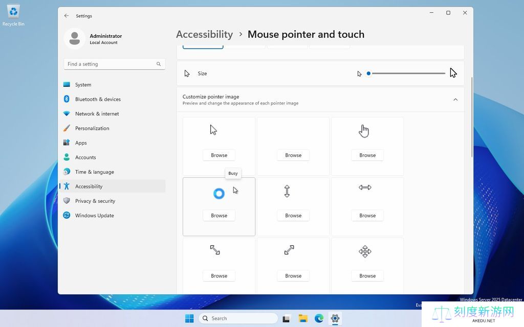 无需进入控制面板,用户是可以在设置 > 可访问性 > 鼠标和设置 > 可访问性 > 鼠标指针和触摸下,直接控制鼠标相关选项。