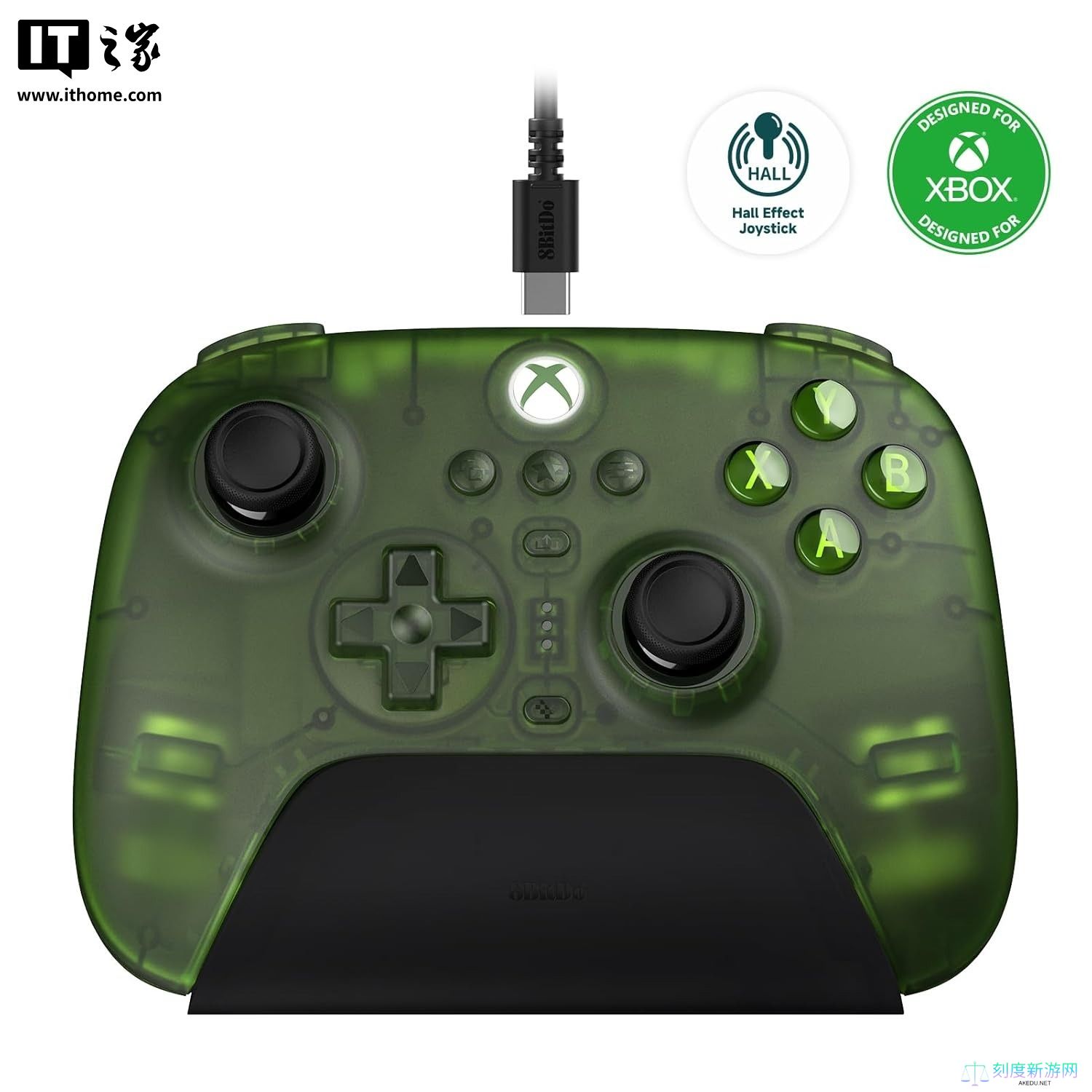 本站 4 月 1 日消息,八位堂昨日于其海外官网发布了 Ultimate 三模手柄 Xbox 版,主要更新了透明翠绿配色。